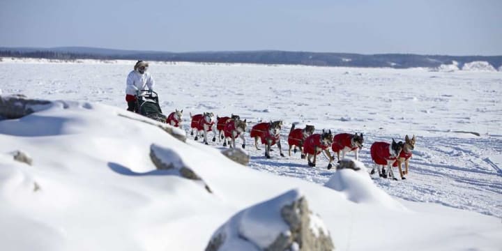 Dog sledding is the most popular sport in the state of Alaska. Alaska has dog sled races in the winter months. During the summer, visitors can visit dog sledding camps at the tops of mountains, via helicopter, to learn about mushing, the dog teams, and even get to enjoy a ride on a dog sled. The most popular dog sledding race is the Tesoro Iron Dog Snowmobile Race, from Anchorage to Nome and to Fairbanks.