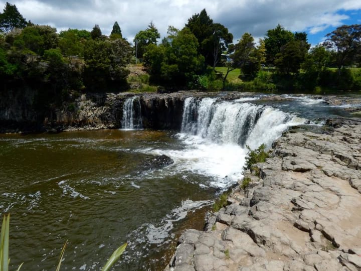 See the beautiful Rainbow Falls, a cascade that encloses a moss-covered cavern It is part of the Kerkeri River Track.