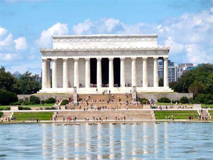 The Lincoln Memorial stands at the end of the mall and is separated from the Washington Monument by a reflecting pool. At the very center of the memorial, you’ll find a 19-foot seated statue of the 16th President of the U.S. Abraham Lincoln.