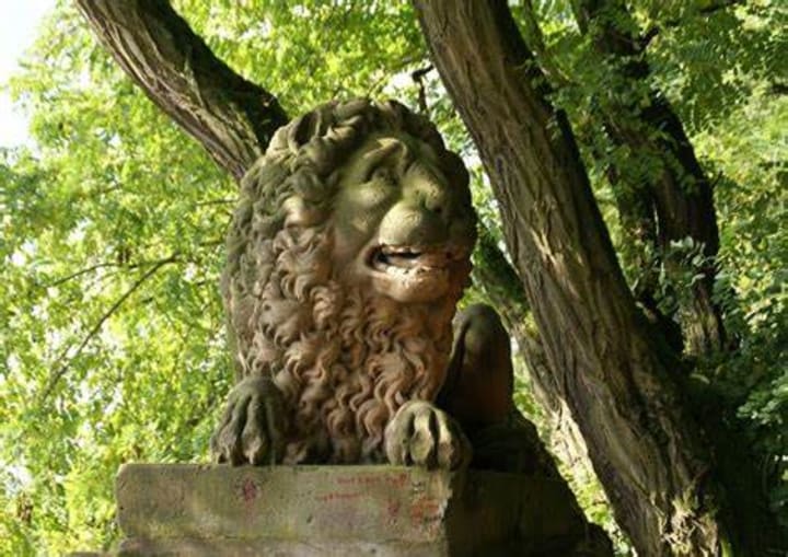 The view is awesome and there is a lion statue.