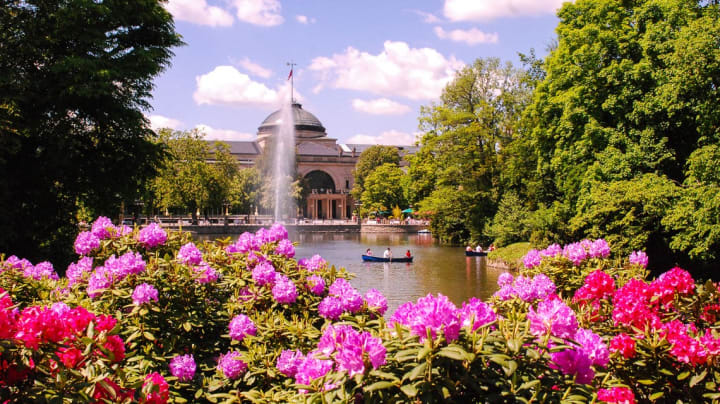 Kurpark is a lovely green oasis designed as an English landscape garden. It was founded in 1852 and has lovely azaleas, magnolias, rhododendrons, and swamp cypresses. There is a man-made island which can be reached by boat from the park’s pond. The pond has a 6-meter-high fountain.