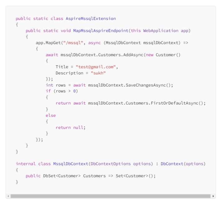 builder.AddSqlServerDbContext<MssqlDbContext>("sqldata");