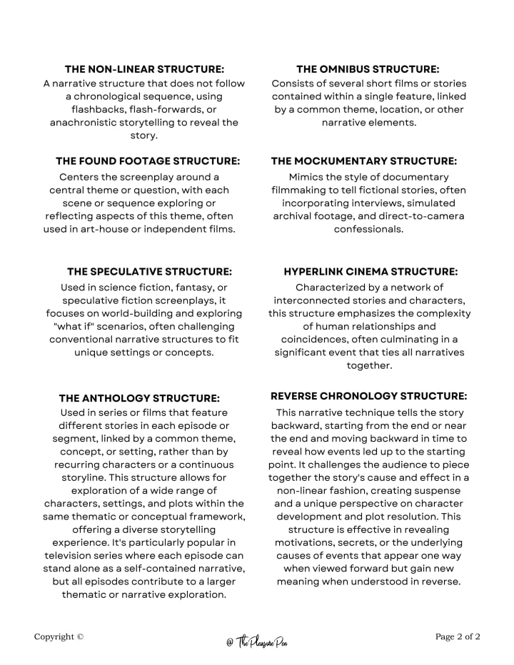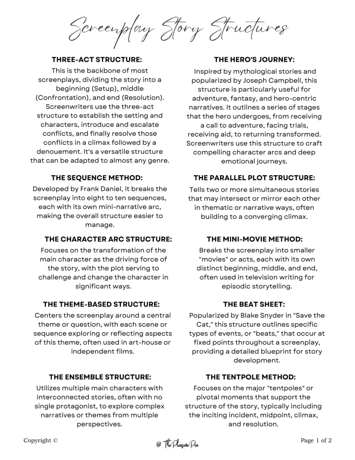 While structures provide a foundation for storytelling, they are not strict formulas that must be followed to the letter. The best screenplays often innovate within or even subvert these structures to surprise the audience and deliver fresh storytelling experiences. The key is understanding the principles behind these structures — such as character growth, thematic development, and narrative pacing — and using them creatively to tell your story in the most effective way possible.