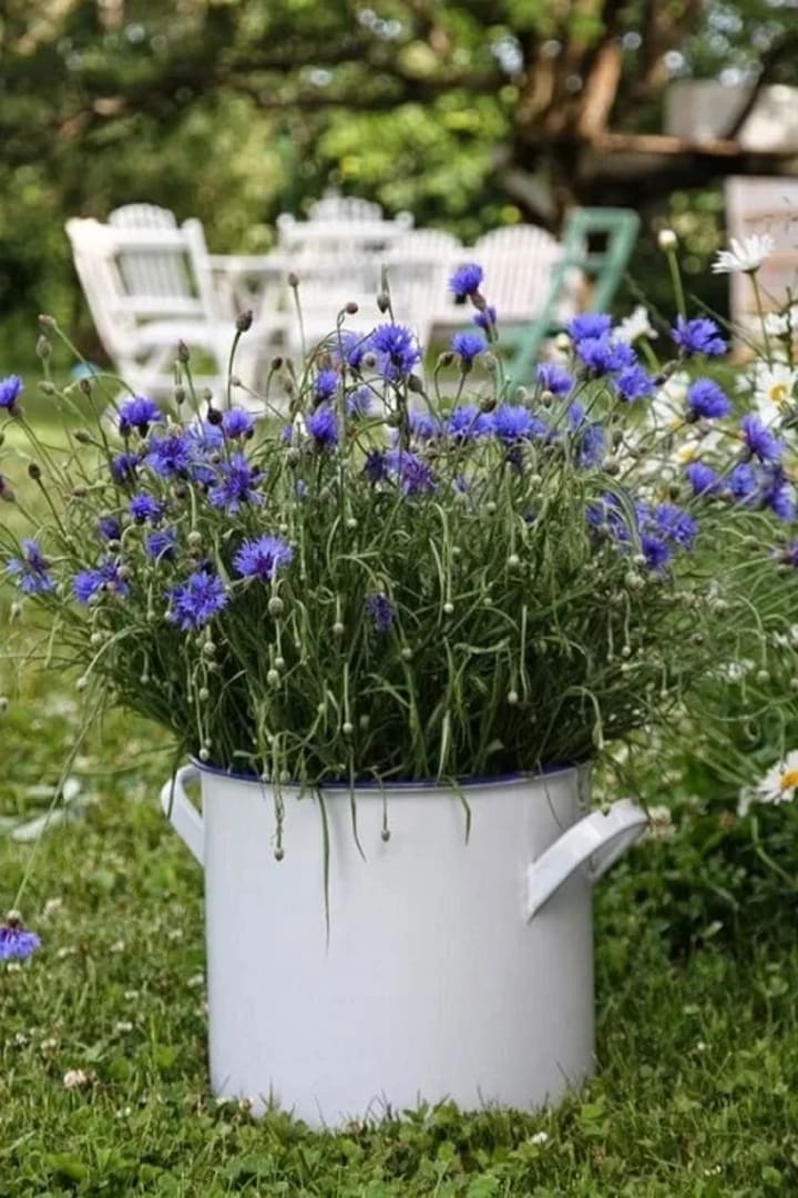 The plants grow some 30–90 cm (1–3 feet) tall with narrow gray-green leaves. They produce papery flower heads surrounded by bracts. The flower heads have blue, pink, or white ray flowers that are attractive to butterflies. Cornflowers readily reseed in suitable environments.