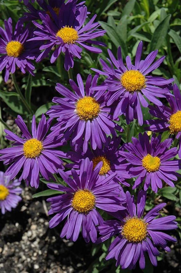 Fully frost hardy, Aster alpinus (Alpine Aster) is a clump-forming herbaceous perennial boasting masses of large daisy-like flowers, 2 in. across (5 cm), with blue-violet rays and golden-yellow centers. Blooming in late spring to mid-summer, the eye-catching blossoms are attractive to butterflies.