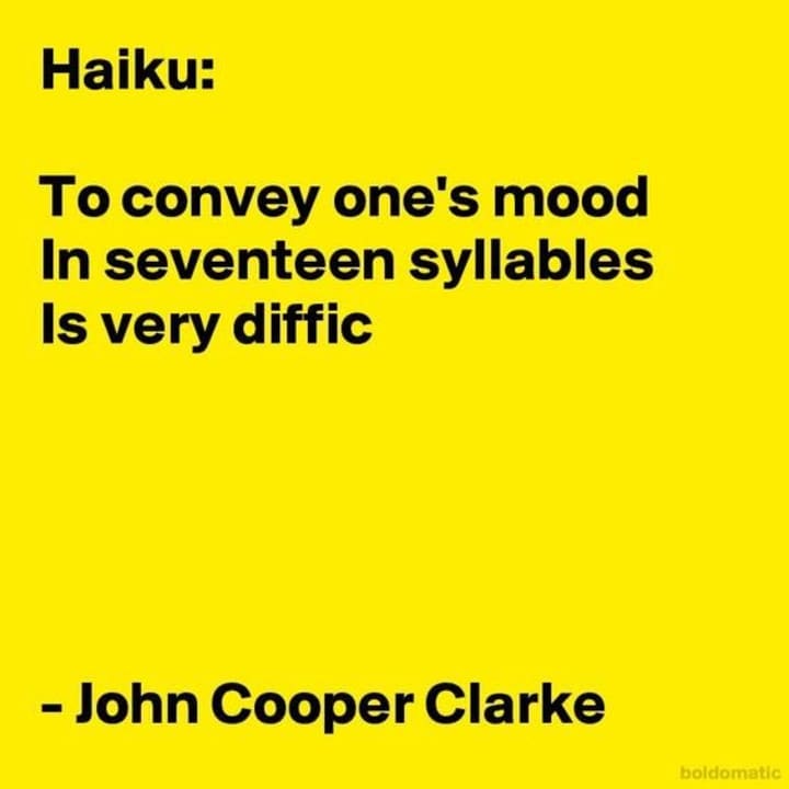 The thing is, writing a Haiku or Senryū (川柳), can take a lot of effort to create a worthy piece in so few syllables. Doctor John Cooper Clarke put it very succinctly in his haiku ( which is actually a Senryū (川柳) )
