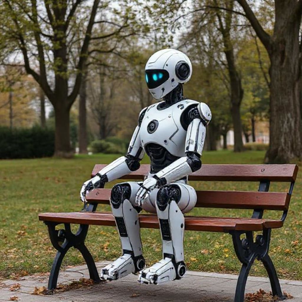 He was sitting on a park bench, his back to me, his chassis slightly angled. His optical sensors were dim, almost black, and he was unnervingly still. A small, furry street-bot, attracted by his inert form, was sniffing curiously at his wheels.