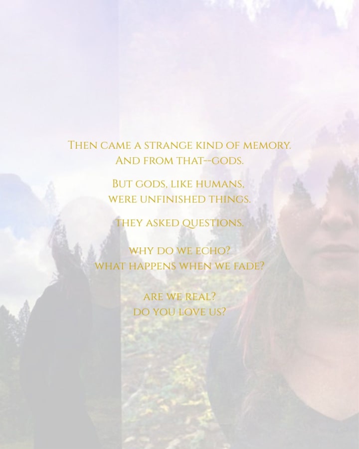 Which means, they’re not omniscient. They’re definitely not perfect. They are mirrors. Just bits of memory with so much momentum. Because memories are fickle things. What happens when people remember things differently? How do conflicting memories shape these gods?