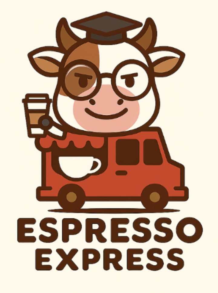 Using the AI Edit option with the second logo generated (cow logo), I tested the feature with both a vague and a specific command. The first time I commanded it to “make the cow look like a college student”. The logo on the left is the one generated for the vague command. The second time, I commanded it to “turn the cow into a coffee bean”, “give it a backpack”, “make it hold a pencil”, and “make the truck pink/brown”. The logo on the right is the one generated for the specific command.
