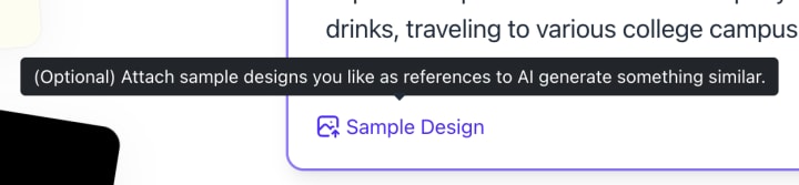 Another example of how users can have more control over the logos generated is by using the Sample Design feature on the homepage. This feature allows users to add references of other logos/designs, so that the AI generated logos can be something similar.