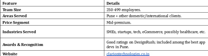 Clarion is another name that shows up frequently: they offer mobile app development with good design & tech, often appealing to small-medium businesses who want quality without huge enterprise cost.
