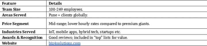 Biz 4Solutions shows up in a few directories as a firm doing mobile + web + IoT work. They tend to be more cost-sensitive than some premium firms, which is useful if budget is an important factor.