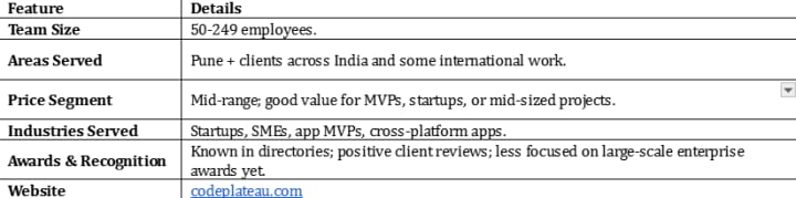 CodePlateau is a rising agency in Pune that offers mobile app development (native, cross-platform), modern tech stacks, maintenance, and responsive design. Often a good choice for newer product ideas or MVPs.