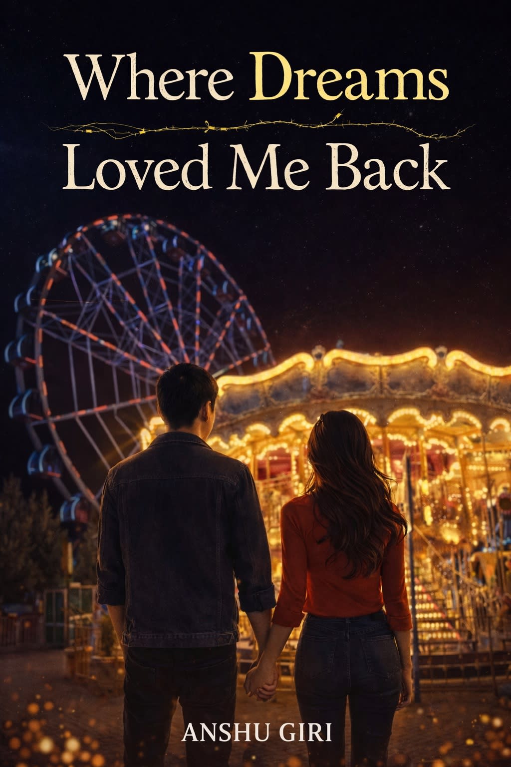 It was night, but not the kind that swallows everything. The sky was deep and calm, and beneath it stood an amusement park glowing softly, as if it existed only for those who needed it most. The lights weren’t loud or blinding — they were warm, inviting, like they were waiting for me.